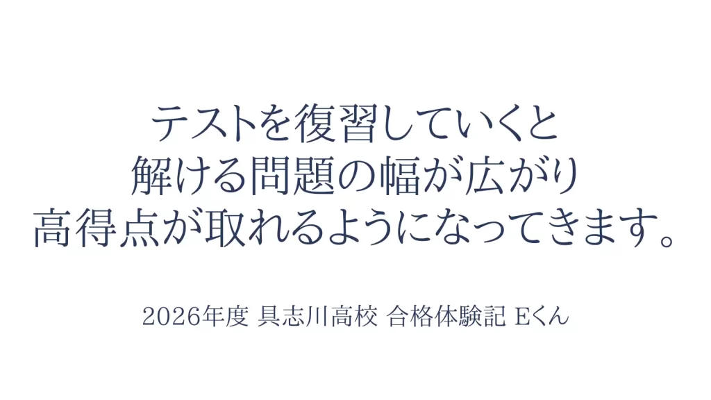 テストを復習していくと解ける問題の幅が広がり、高得点が取れるようになってきます。