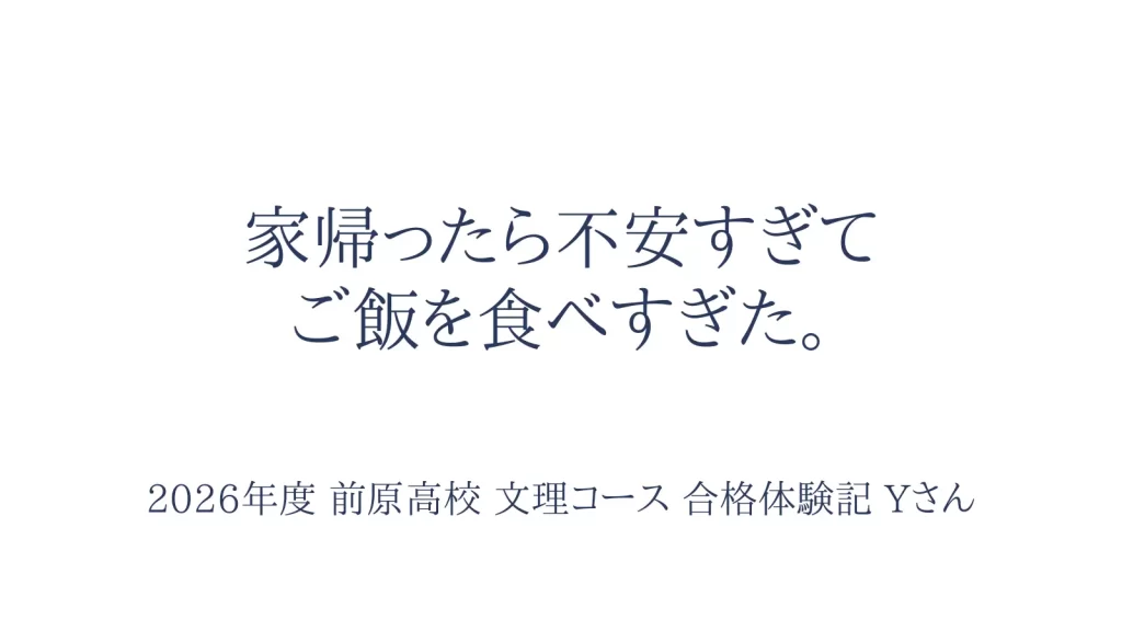 前原高校 文理コースに一般入試で合格したYさんの合格体験記です。 合格体験記(前原高校 文理コース 一般合格 Yさん) 前原高校に受験するって決めて勉強を頑張るって… -