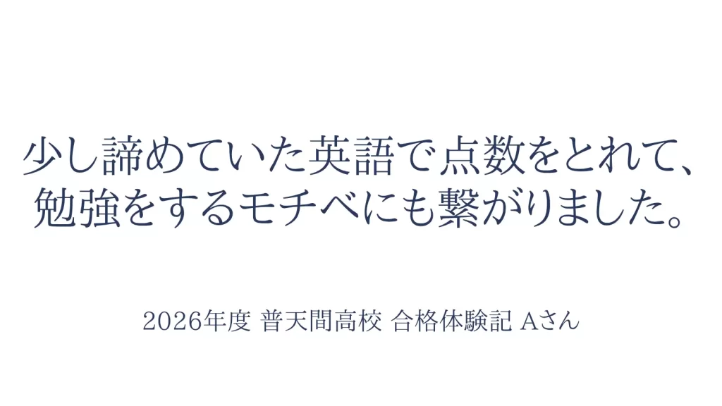 少し諦めていた英語で点数をとれたことで、勉強をするモチベにも繋がりました。
