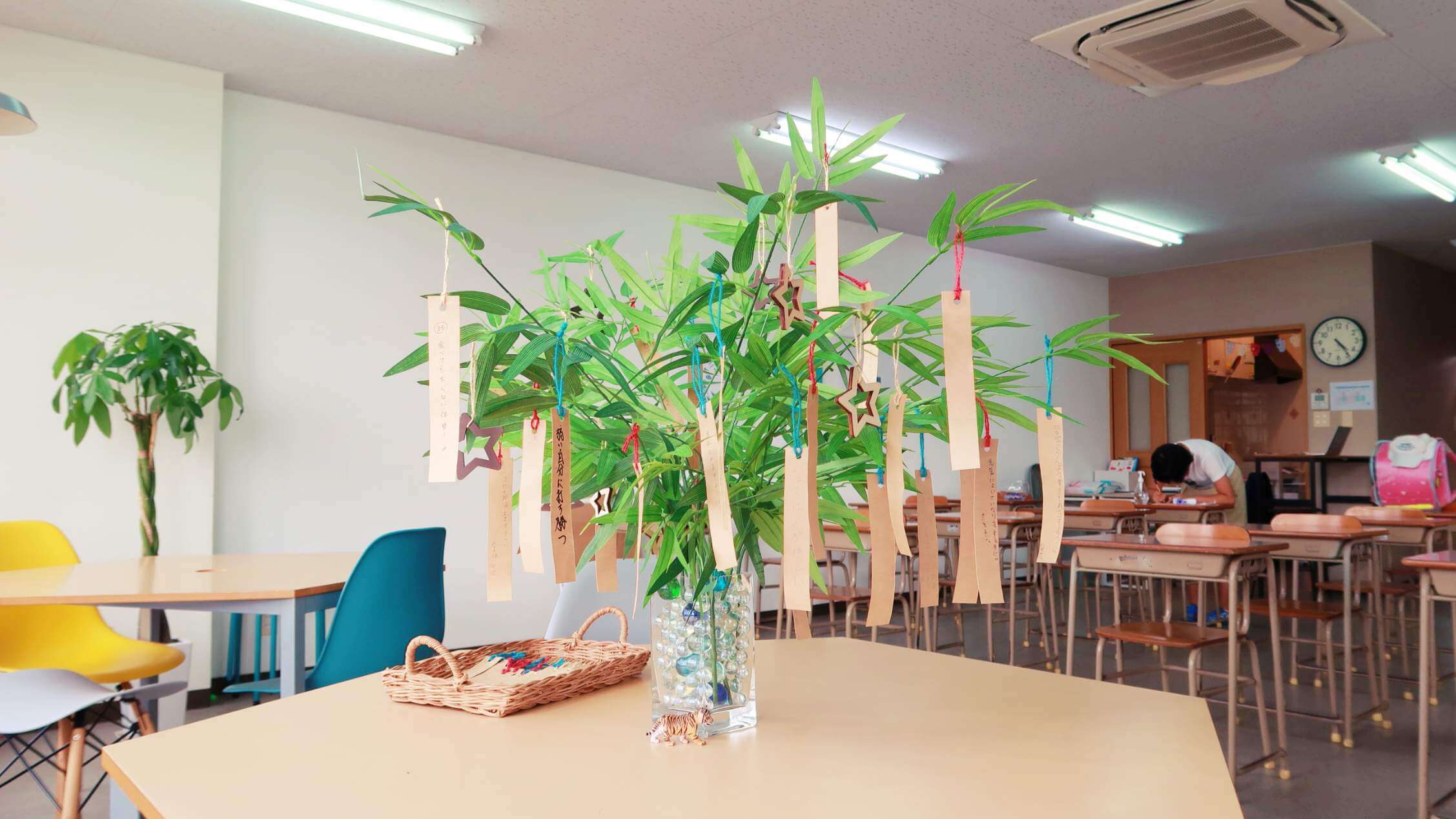 七夕祭りということで短冊に願いを書いてもらいました。