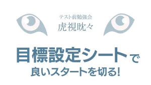 テスト勉強会のスタート時点で「目標設定シート」を書き、残り1週間になった時点で「目標確認シート」を書く流れになっています。