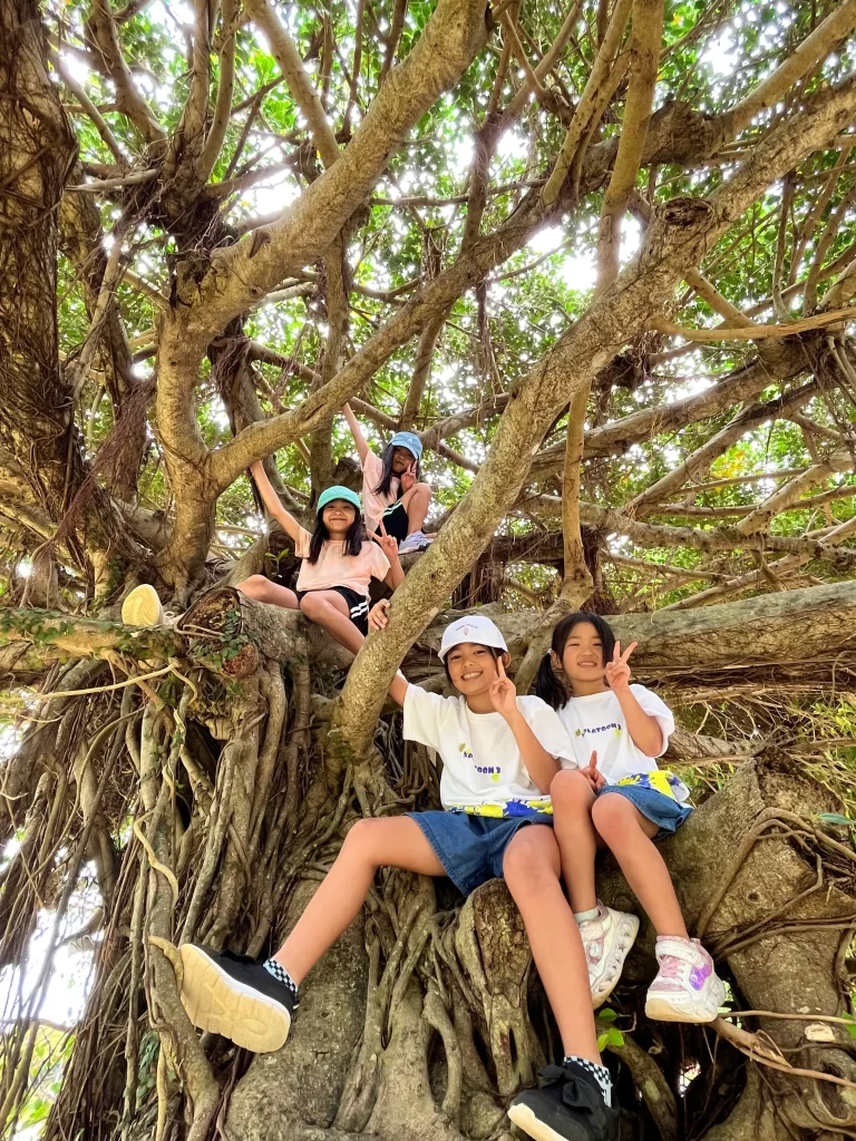 子どもの木登りを眺める