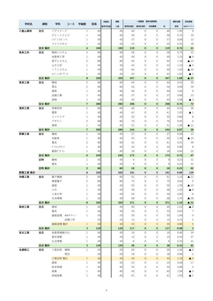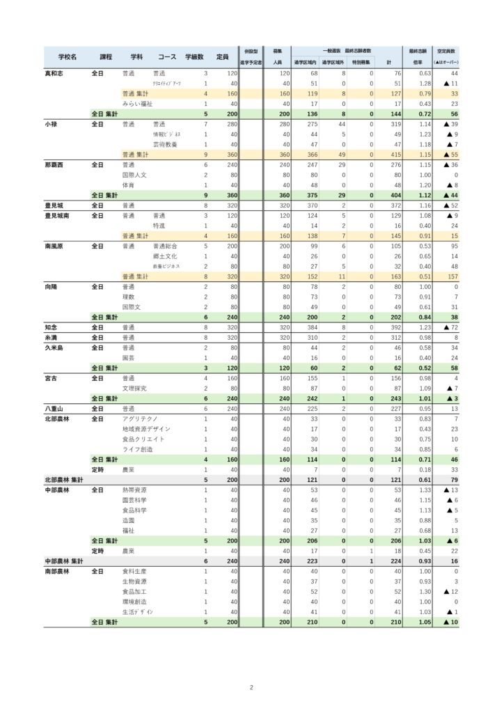 前原高校と北中城高校の倍率は高いまま
