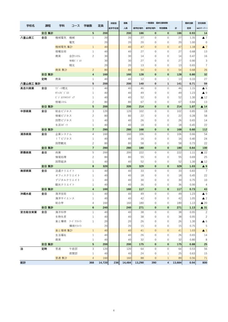2026年度(令和8年度)の沖縄県立高校入試、最終志願倍率が発表されました