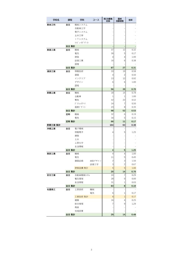 入試2026|沖縄県立高校入試 2次募集 最終倍率