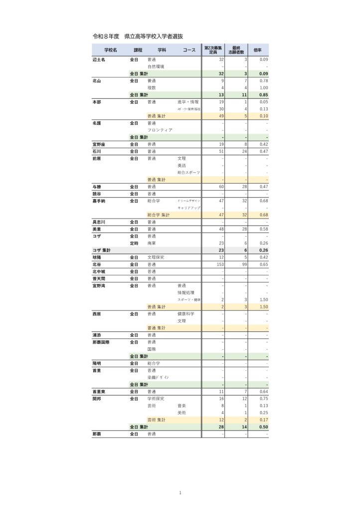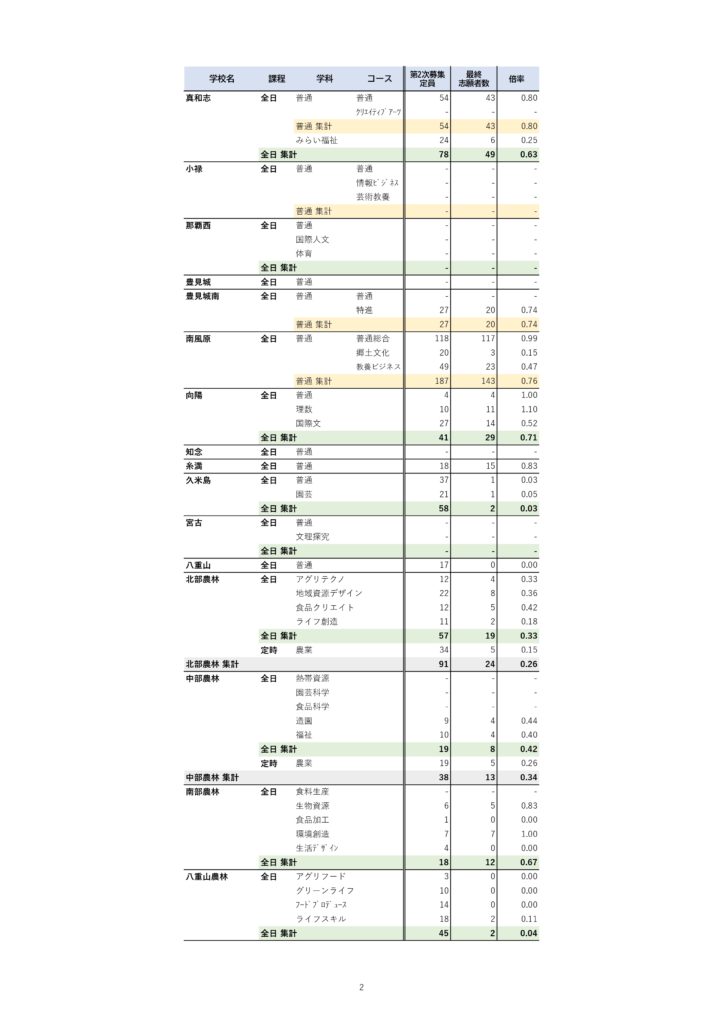 令和8年度(2026年度)の沖縄県立高校入試 2次募集の最終倍率が発表されました。