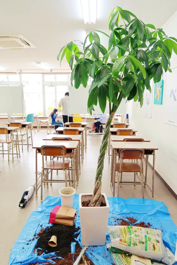 こんにちは!うるま市にあります学習塾ベンガルです! 開校祝いでいただいた幸福の木(ドラセナ)の植え替えにトライしました。 というのも最近調子が悪そうなんですε-(…