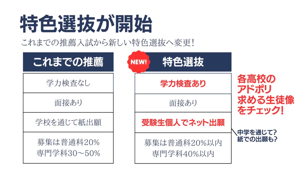 特色選抜とは、2025年度入学予定者からはじまる新しい特別入試です。
