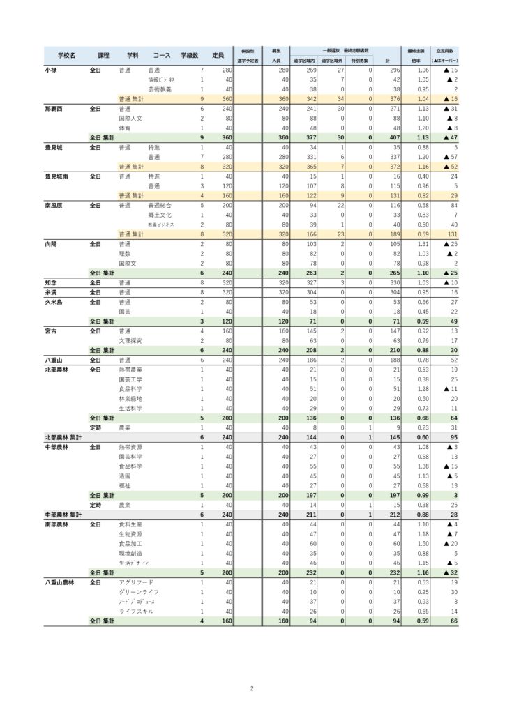 2026年度沖縄県立高校の一般志願倍率(初回)